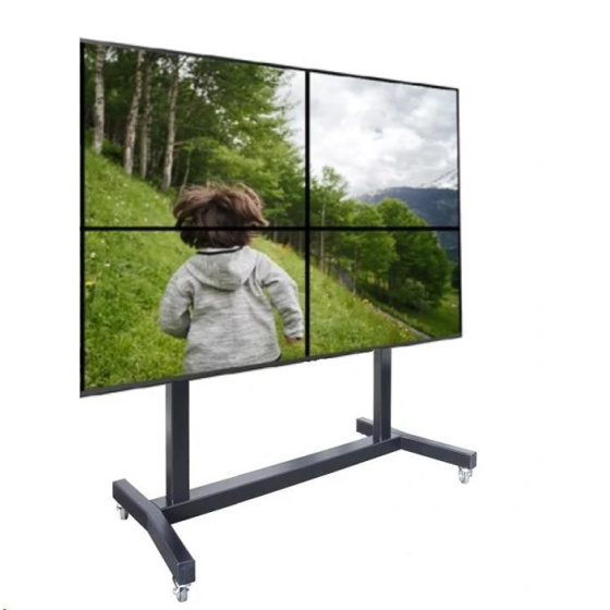 Podlahový pojízdný televizní stojan na 4 obrazovky 43" - 55", podstava 1634x725 mm, výška 1903 mm, VESA 150x150 až 400x400, nosnost 160 kg.