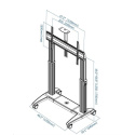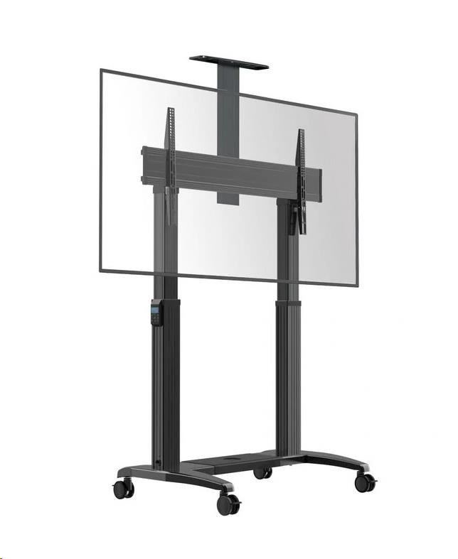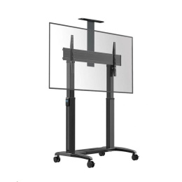 profesionálny TV stojan NB GF150 Profesionálny motorizovaný stojan na TV 60" - 120", elektrické nastavenie výšky 1250-1750 mm, nastavenie výšky obrazovky na paneli alebo diaľkovým ovládaním, zásuvka na pripojenie TV, 2 výkonné 150W motory, horná police 255x130 mm, kolieska s aretáciou, podporované VESA štandardy 200x200 až 1000x600, nosnosť 136 kg Motorizovaný profesionálny televízny stojan najvyššej kvality a v krásnom dizajne. Stojan je ideálny na televízie, displeje, dotykové obrazovky alebo monitory s uhlopriečkou od 60" až do 120". Umožní vám veľmi ľahko nastaviť presnú výšku obrazovky buď na ovládacom paneli umiestnenom na stĺpiku stojanu alebo diaľkovým ovládaním. Možnosť uloženia 3 výšok do pamäte stojanu. V hornej časti stojanu je integrovaná zásuvka na pripojenie obrazovky - nie je teda nutné pripojiť do el. siete zvlášť stojan a zvlášť obrazovku - pripojením stojanu budete zároveň napájať aj pripojené zariadenie, navyše nie je potrebné riešiť dostatočnú dĺžku prívodného kábla. Stojan sa dodáva vrátane hornej police na umiestnenie príslušenstva (kamera, projektor, mini PC a pod.) s rozmermi 255x130 mm. Telo stojanu je z hliníka, zavesný systém je oceľový. Podstava stojanu je vybavená 4 otočnými kolieskami s možnosťou aretácie. Stojan má systém na vedenie káblov. Tv stojan NB GF150G Technické údaje: nosnosť 136,4 kg podporuje VESA štandardy od 200x200 až do 1000x600 ideálny na TV, monitory, dotykové obrazovky a displeje s uhlopriečkou 60" až 120" minimálna výška 1250mm (stred obrazovky) maximálna výška 1750mm (stred obrazovky) elektrické nastavenie výšky ovládaním na stojane alebo diaľkovým ovládaním 2 silné 150W motory rozmery podstavy stojanu 1250x840 mm 4 otočné kolieska s aretáciou systém na vedenie káblov na stojane je integrovaná zásuvka pre napájanie obrazovky najvyššia kvalita, precízne spracovanie, krásny dizajn záruka 3 roky
