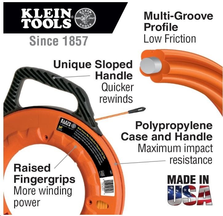 Napínacie pero Klein Tools, sklolaminátové jadro, dĺžka 30 m, priemer 4.8 mm, koniec s oceľovou špirálou