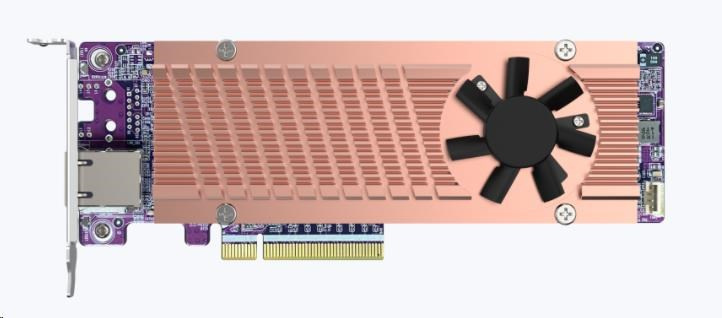 Začínadlo QM2-2P410G1T umožňuje jednoducho pridať k vášmu QNAP NAS disky M.2 NVMe SSD a pripojenie 10GbE RJ45, bez nutnosti inštalácie ovládača. Začínadlo QM2-2P410G1T je vybavené radičom Broadcom® a rozhraním PCIe 4.0, takže poskytuje väčšiu šírku pásma pre vyššiu výpočtovú rýchlosť a prístup k dátam. Začínadlo QM2-2P410G1T zvyšuje výkon pridaním M.2 PCIe Gen4 NVMe SSD. Nezaberá 3,5" pozíciu pre disky, čo umožňuje maximalizovať úložnú kapacitu aj výkon. Začínadlo QM2-2P410G1T disponuje sieťovým portom 10GBASE-T Multi-Gigabit (10G / 5G / 2,5G / 1G / 100M), vďaka ktorému vaše zariadenie QNAP NAS môže získať vysokorýchlostnú konektivitu 10GbE pre úlohy náročné z hľadiska prenosovej šírky. S rôznymi switchmi QNAP 10GbE môžete ľahko vykonať upgrade na vysokorýchlostné sieťové prostredie.