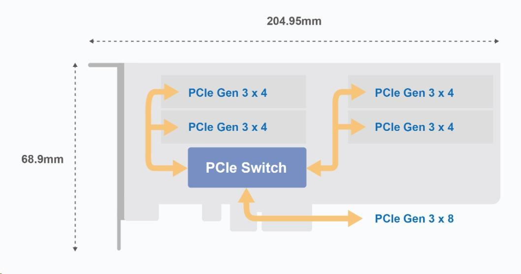 Technické špecifikácie| Konektor | 4 x M.2 2280 PCIe (Gen 3 x 4) NVMe SSD sloty |