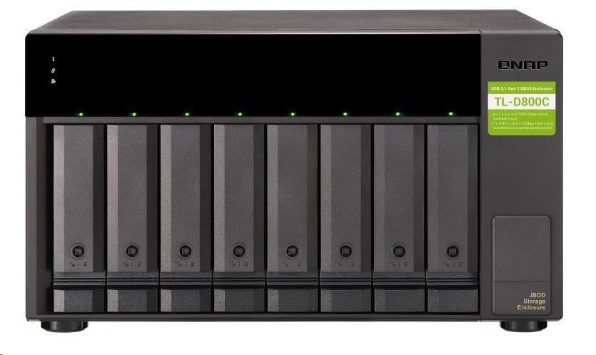 Úložná jednotka JBOD TL-D800C vám umožňuje zálohovanie a rozšírenie vášho zariadenia QNAP NAS. Zariadenie TL-D800C má osem 3,5" diskových pozícií SATA 6Gb/s s konektivitou USB 3.2 Gen2 (10 Gb/s) typu C pre zabezpečenie riešenia, ktoré umožňuje rýchle a jednoduché rozšírenie.