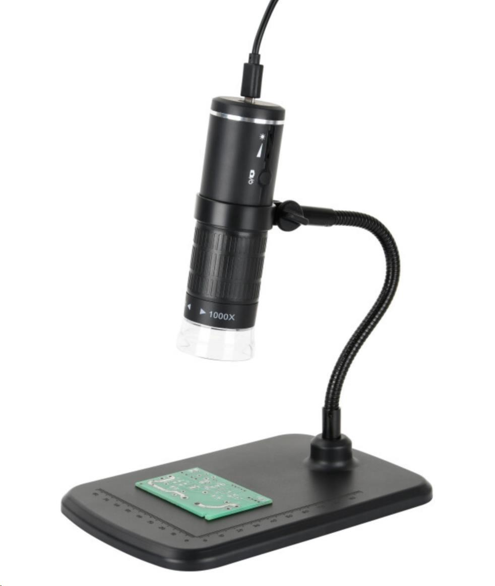 DigiMicroscope WiFi 2.0 s praktickým uchycením "husím krkem" k podložke, WiFi pripojenie pomocou Free APP pre Android a iOS alebo USB2 k PC/MAC. Rozlíšenie FullHD JPG/MP4, zväčšenie 50-1000x, osvetlenie 8 LED s reguláciou, interný Li-Ion, USB2, rozmery 35x125 mm, hmotnosť 90g. Flexibilné použitie vďaka bezdrôtovému pripojeniu a internému Li-Ion akumulátoru. Vrátane kovového flexi-držiaku s podložkou a USB kábla.