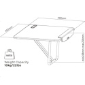 ERGOnomická pracovná plocha na laptop a mobil max 10kg na upevnenie na opornú časť pracovnej stoličky, jednoduché riešenie na zmenu polohy pri práci s laptopom zo sedenia na státie, nastavenie optimálneho sklonu oporným mechanizmom, prenosné prevedenie, rozmery 45x40x26 cm, farba čierna.