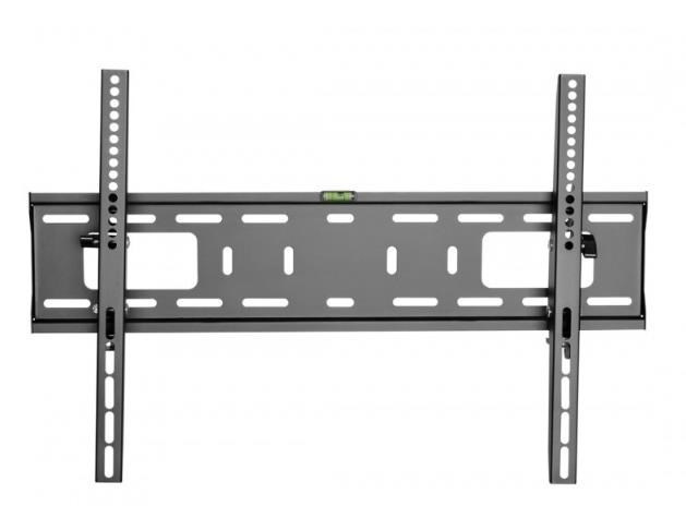 Nástenný oceľový držiak na Plasma a LCD TV s uhlopriečkou 37"- 70" (94-178cm) a hmotnosťou maximálne 50kg. Konzola na zavešenie TV s vodováhou, vertikálne výklopný +5°/-10°, vzdialenosť od steny 56mm, materiál oceľ, cenovo výhodné, farba čierna. Upevnenie VESA: 200x200, 400x200, 300x300, 400x400, 600x400.