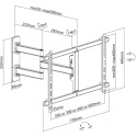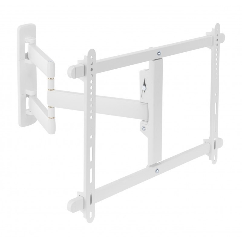 Nástenný oceľový držiak s bočným natáčaním na TV s uhlopriečkou 37"- 80" (109-203cm) a hmotnosťou maximálne 50kg. VESA max 600x400, 3x pant, vertikálne výklopný +5°/-10° a horizontálne otočný +90°/-90°, vzdialenosť od steny 59-590mm, Cable Managment, farba biela. Uchytenie VESA: 200x200, 300x200, 400x200, 300x300, 400x300, 400x400, 600x400. Direction indikátor, jemné nastavenie polohy oproti fixácii na stene +2°/-2°, rozmery 590 x 730 x 445 mm.