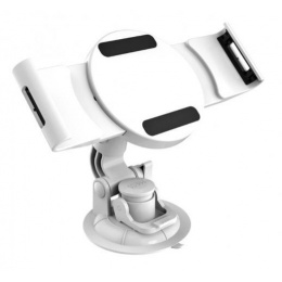 Držiak na čelné sklo pre 7-11" tablety v horizontálnej a vertikálnej polohe. Sklenený prísavný adaptér s guľovou hlavou na voľné nastavenie, otočný o 360°, obojstranné upevnenie, plast, biely...