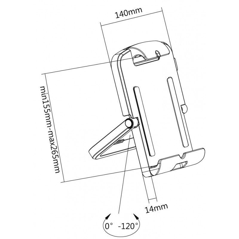 Tenký Slim stojánek pro tablety 7-10,1"/17-26cm max 1kg v horizontální i vertikální poloze na stůl, zeď a pomocí magnetů na kovovou plochu. VESA 75x75, 2x otvory pro uchycení vruty, fixace tabletu ze dvou stran, lehké plastové provedení pro transport, rozměry 19,7x14x3,6cm, šedý / bílý.