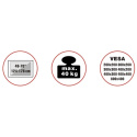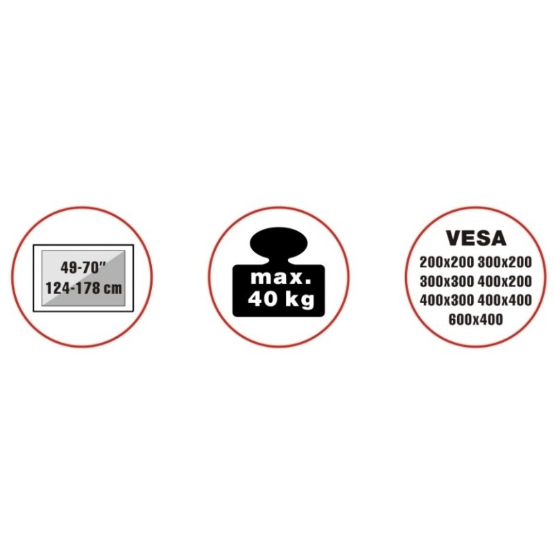 Unikátna televízna stolík na veľké LCD TV s uhlopriečkou 49"- 70" (124-178cm) a hmotnosťou maximálne 40kg. Dizajnová tmavá kovová konštrukcia s efektným Multicolor RGB LED osvetlením s diaľkovým ovládaním. Precízne tvarovanie a vedenie káblov pre maximálny estetický zážitok. Uchytenie VESA: 200x200, 300x200, 300x300, 400x200, 400x400, 600x400.