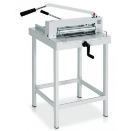 Pohodlné rezanie až do formátu A3, dĺžka rezu 430 mm, hĺbka vkladania stohu 435 mm. Stroj má integrovanú sadu bezpečnostných prvkov SCS. "Bezpečnostný systém rezania", ktorý zahŕňa: priehľadný bezpečnostný kryt na prednom stole, aretáciu nožov (páka v najvyššej polohe), jednoduchú a bezpečnú výmenu nožov spredu bez nutnosti demontáže krytov nožov, pomôcku na výmenu nožov s ochranným krytom, nastavenie hĺbky zárezu noža (zvonka), jednoduché otáčanie/výmena reznej lišty (zvonka). Podstavec je voliteľné príslušenstvo. Rozmery bez podstavca (vxšxh): 400 × 880 × 880 mm, hmotnosť 44 kg...