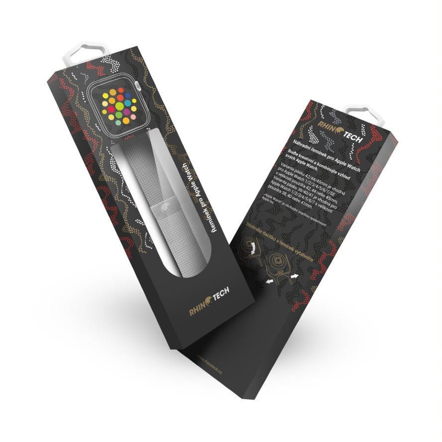Řemínek je díky své konstrukci plně prodyšný, tudíž s klidem zapomeňte na nepříjemné pocení a následné podráždění pokožky. Upínání řemínku je magnetické a je naprosto jednoduché a univerzální, díky kovovému materiálu si tak můžete nastavit, jak moc chcete mít řemínek utažený a přizpůsobí se jakékoliv tloušťce ruky. Upínací magnet je zároveň ozdoben decentním logem RhinoTech v?barvě řemínku a díky tomu se dobře přizpůsobuje designu. Tři barevné varianty, černá, stříbrná a růžovo-zlatá se dobře hodí ke všem typům Apple Watch a skvěle je nakombinujete k jakémukoliv outfitu.