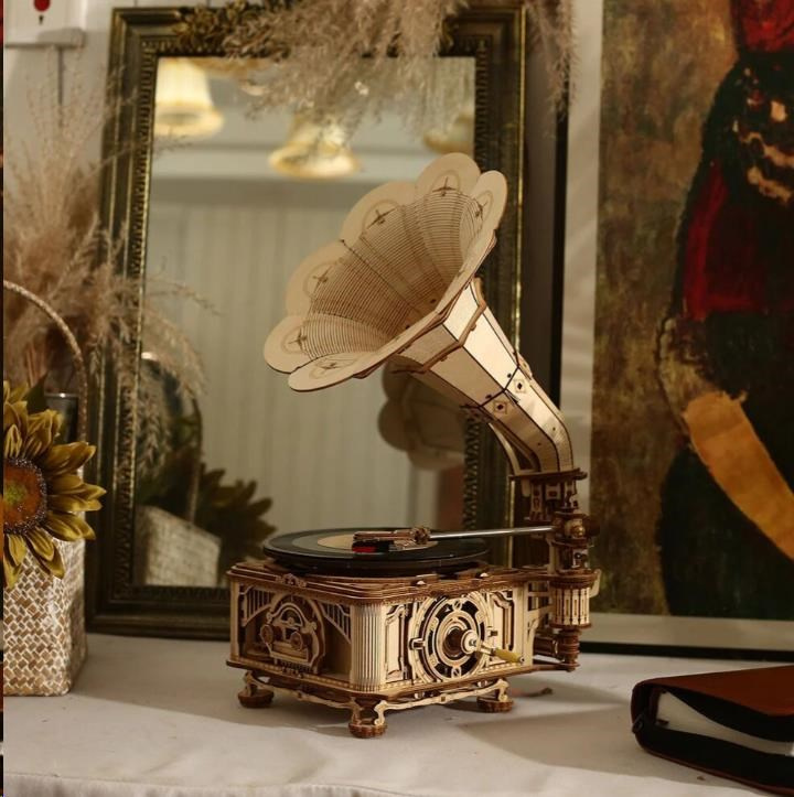 Popis RoboTime 3D dřevěné mechanické puzzle Gramofon (elektrický pohon)