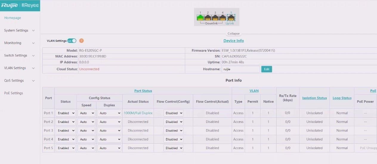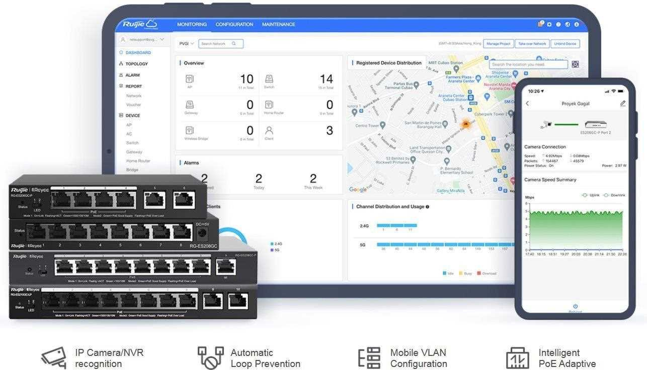Popis Reyee RG-ES209GC-P Smart mananged PoE switch, 8x PoE