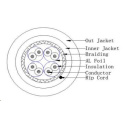 S/FTP kábel 4 páry LSZH+PE CAT 7 drôt 23AWG z čistej medi. Najmä na vonkajšie použitie alebo do extrémnejších podmienok, metrové meradlá balené na drevených cievkach po 500 m. Dvojitý plášť LSZH + PE (UV stabilný)