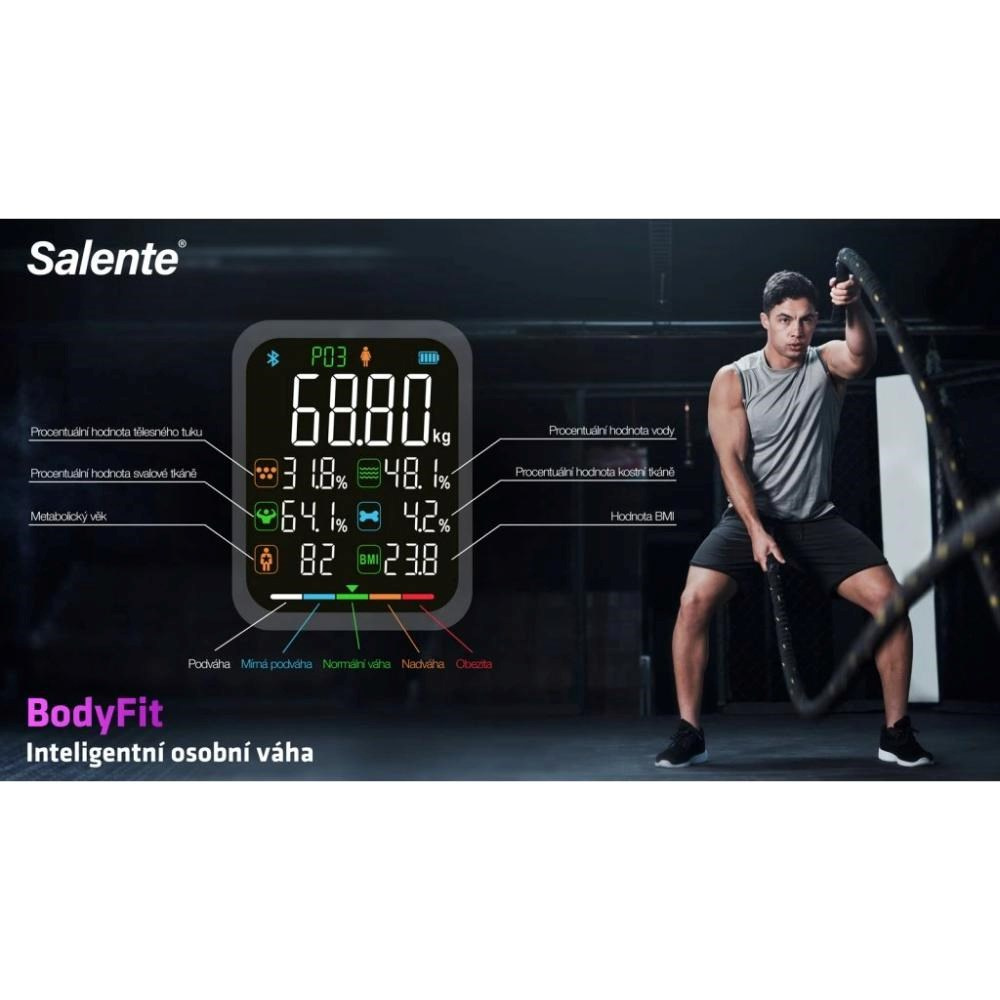 Hubnutí, zdravý životní styl či péče o vlastní tělo. Nic z toho není sprint, ale spíš maraton. Postupně ladíte jídelníček, přidáváte pár kroků denně navíc, časem možná začnete pravidelně cvičit. A pak přijde ta klíčová chvíle: stoupnout si na váhu a zjistit, jak si vedete. Právě v takových okamžicích se hodí mít doma osobní váhu Salente BodyFit. Jedná se totiž o vašeho spolehlivého a všestranného sparing partnera, který vám při vážení neukáže jen suché číslo, ale pomůže pochopit celý váš příběh. Pracuje na principu bioelektrické impedanční analýzy, a tak vám s lehkostí sobě vlastní objasní, jak si vedete z hlediska hmotnosti, složení těla i třeba BMI. A podrží vás, i když vám zrovna údaj na displeji moc nelichotí.