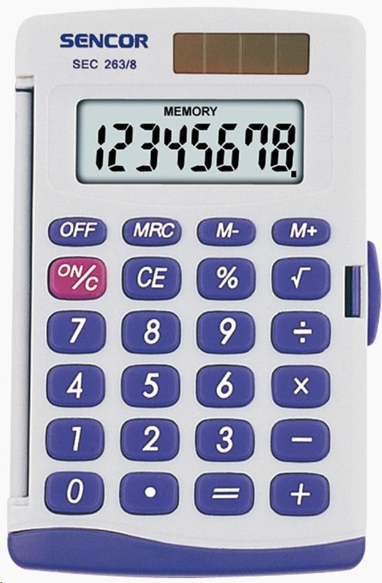 Kapesná kalkulačka s pevným plastovým krytom Prehľadný 8-miestny displej Výpočet percent a odmocniny Oprava zadania, 3 tlačidlová pamäť Napájanie: Duálne solárne/batériové Rozmery: 10 x 60 x 94 mm, hmotnosť: 35 g EAN 8590669044900