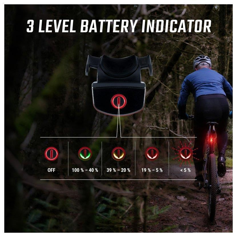 Kompaktné, ľahké a napriek tomu plné sily. Zadné svetlo Buster RL 80 je univerzálnym spoločníkom vo všetkých situáciách. Nezáleží na tom, či jazdíte na bicykli po ceste alebo v lese, s 80 lumenmi a dosvitom až 1500 metrov je toto kompaktné svetlo neprehliadnuteľné. Zadné svetlo s nabíjateľnou integrovanou batériou disponuje piatimi svetelnými režimami a môže svietiť až 12 hodín. Týchto päť svetelných režimov vrátane režimu Flash pre deň aj noc zvyšuje viditeľnosť a zabezpečuje vyššiu bezpečnosť v cestnej premávke.