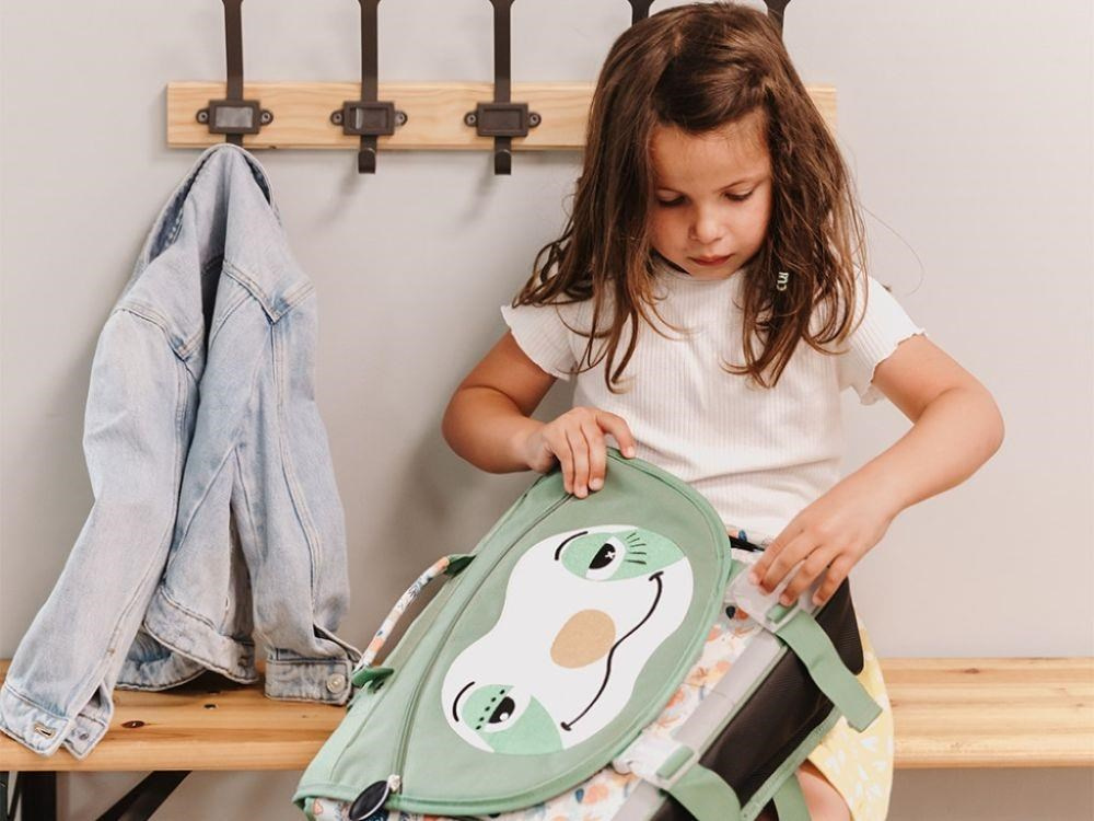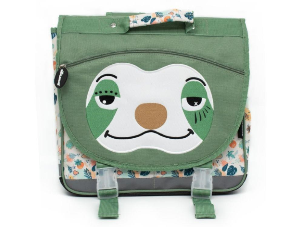 Aktovka (školský batoh) v neutrálnih farbách, s rozkošným lenochodom, je ideálnou školskou taškou pre prvákov. Veľký vnútorný priestor, do ktorého deti pohodlne uloží aj sešity vo formáte A4, 2 vnútorné priehradky, vnútorná kapsa na zips, všetko to uľahčí novopečeným školáčkom prípravu a upratovanie školských potrieb. Samozrejmosťou sú polstrované ramenné pásy, pútko, štítok na meno aj reflexné prvky.