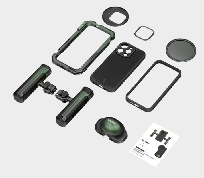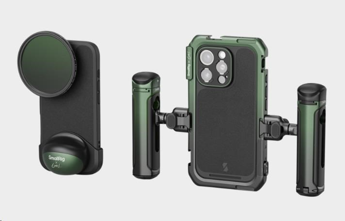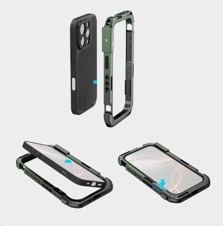 Telefon lze rychle upevnit do klece, která je vybavena několika otvory se závitem 1/4"-20 proti otáčení a úchyty pro studenou botku, a rozšířit ji tak o příslušenství, jako jsou rukojeti, stativy, mikrofony a světla, což zvyšuje zážitek z fotografování, zatímco integrovaná rozhraní pro rychloupínání zajišťují bezproblémové připojení.