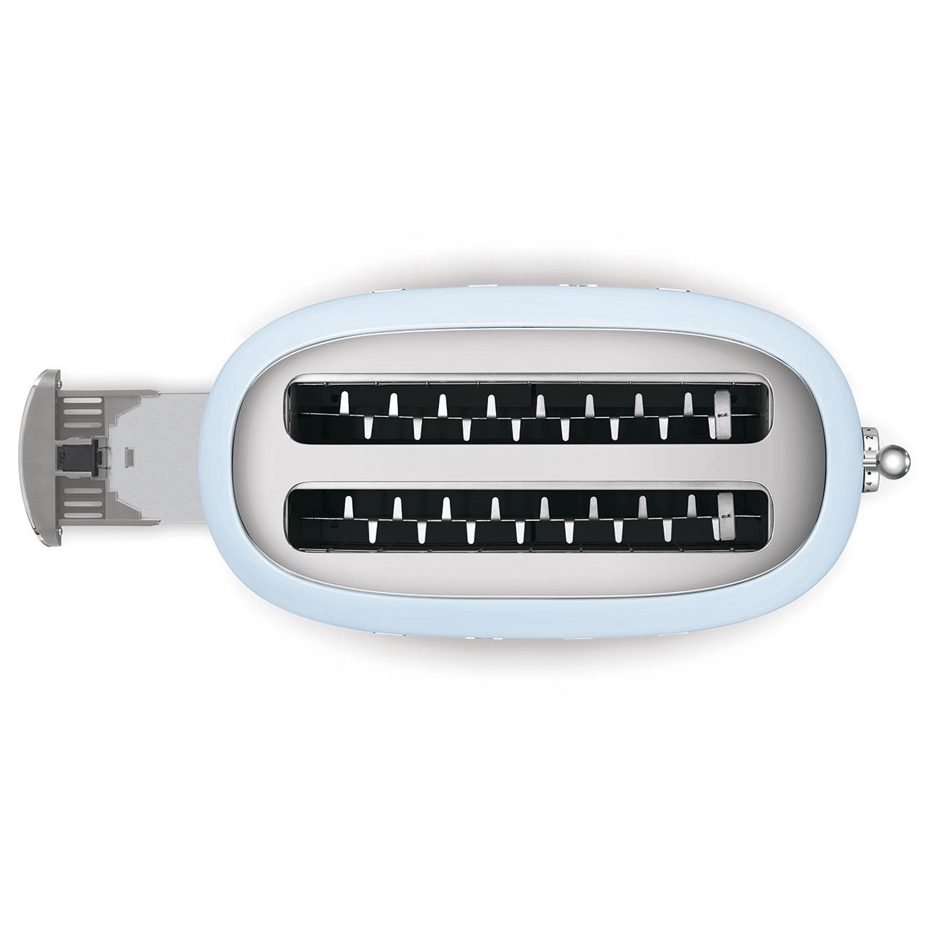 Pro rovnoměrné opečení krajíců chleba všech velikostí se pečivo v otvorech topinkovače dokonale vycentruje.
