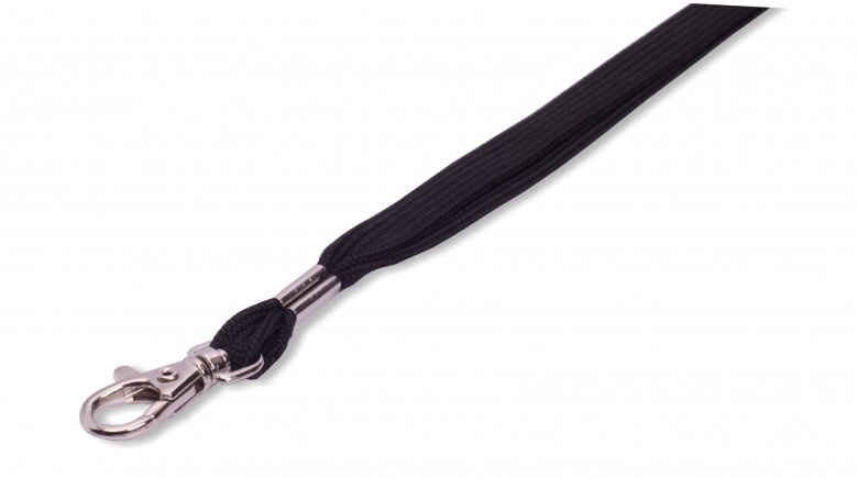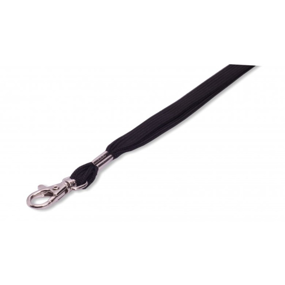 Dutá šnúra s čiernou karabínou. Šírka šnúrky 12 mm, dĺžka 90 cm. Balenie 50 ks.