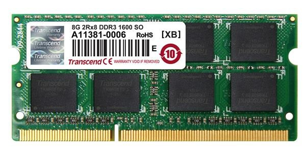 Popis SODIMM DDR3 8GB 1600MHz TRANSCEND JetRam™, 512Mx8 CL11, maloobchodný predaj