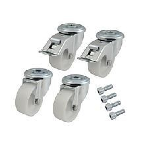 V prípade potreby pohybu inštalovaného rozvádzača sú k dispozícii sady pojazdových kolečiek (set 4 kusy). Kolečka sú konštruované pre nosnosť maximálne 600 kg staticky a umožňujú pomalý pohyb po rovine podložke. V sade sú obsiahnuté 2 kolečká pevné a 2 kolečká otáčajúce sa s brzdou. Rozvádzač s namontovanými kolečkami zvýši svoju výšku o 110 mm. Kombinovať kolečká s nivelačnými nožičkami nie je možné. Tieto kolečká sú pripravené iba na inštaláciu na rozvádzače dodávané našou spoločnosťou