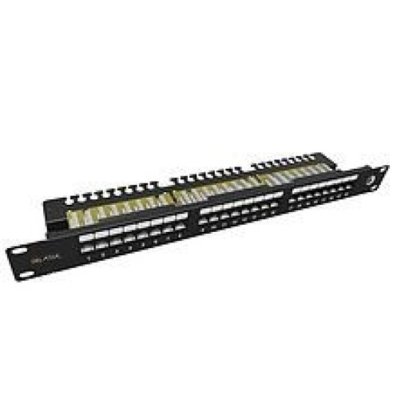 patch panel Solarix SX24L-6-UTP-BK-N je 19" netienený panel kategórie 6 s 24 portami RJ45. Súčasťou tela tohto panela je viazacia lišta, ktorá slúži na pevné upevnenie káblov. Inštalačný kábel sa na tomto paneli ukončuje do dvojitej svorkovnice 110/Krone IDC - t. j. na vrubovanie možno použiť nástroje typu 110 a Krone. Panelová svorkovnica je označená podľa noriem T568A aj T568B. Rovnako ako všetky ostatné komponenty štruktúrovanej kabeláže Solarix je aj tento panel vyrobený tak, aby poskytoval veľmi dobrú funkčnosť a vysokú spoľahlivosť. Tento patch panel spĺňa požiadavky na káblové komponenty kategórie 6 a triedy E definované v normách ANSI/TIA 568, ISO/IEC 11801 a EN 50173 vrátane všetkých najnovších zmien a doplnení. Farba patch panelu je čierna; veľkosť v dátovom stojane je 1U. Súčasťou balenia je 4 x montážna súprava M6 a 24 x viazacie popruhy. Tento nový patch panel Solarix nahrádza panel SX24L-6-UTP-BK.