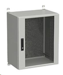 rozvádzač pozostáva zo samonosnej zváranej konštrukcie z 1,5 mm hrubého plechu, ktorá je prispôsobená na montáž na stenu pomocou štyroch dodávaných závesov. Dvere sú zabezpečené proti otvoreniu pomocou jednobodových cylindrických zámkov alebo pomocou trojbodového zámku, závesnej kľučky s vložkou. Na vnútornej strane dverí sú privarené dva zvislé perforované rámy, ktoré zvyšujú tuhosť a slúžia aj na pripevnenie a upevnenie vybavenia skrine. Uzemnenie krytu sa vykonáva modernou technológiou kapacitného zvárania pomocou pokovovaných skrutiek. Tesnenia dverí sú vyrobené technológiou liateho tesnenia. Prístroje sa dajú namontovať do skrine na 19" koľajniciach s pozinkovaným plechom. Na zadnej strane skrine je tiež upevnený montážny panel z pozinkovaného plechu s hrúbkou 2 mm. 19" koľajnice a montážny panel možno plynule nastaviť na požadovanú hĺbku v racku. V prípade potreby zabudovania do steny možno rozvádzač doplniť rámom na zamurovanie, vo vonkajšom prostredí pridaním striešky.