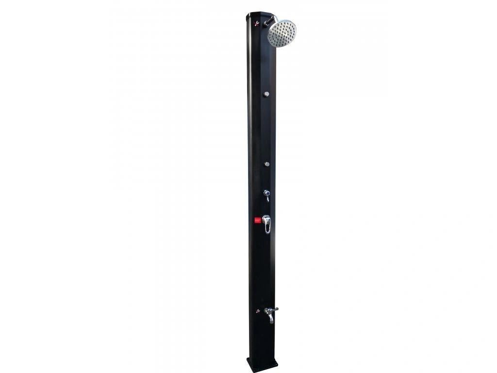 Solárna sprcha je ideálnym zdrojom teplej vody bez použitia elektriny. Voda je v solárnom zásobníku jednoducho ohrievaná slnkom až na 60°C. K tomu prispieva aj čierne prevedenie sprchy. Sprcha je vybavená miešacou pákovou batériou, aby ste si nastavili teplotu vody, ktorá vám bude vyhovovať.