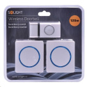 sada 2x prijímač, 1x tlačidlo 48 voliteľných melódií, z toho 16 polyfonických LED indikátor zvonenia na zvonku aj tlačidle tlačidlo s krytom na menovku vodotesná ochrana tlačidla IP44 nastavenie hlasitosti zvončeka - 3 stupne (50 - 90dB) uchytenie tlačidla pomocou samolepnej podložky farba: biela dosah signálu na otvorenom priestranstve: 120m napájanie: tlačidlo: 1 x 12V (LR23A) batéria (súčasť balenia) zvonenie: AC 230V - do zásuvky pracovná teplota: -10°C až +40°C