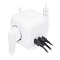 Premyslené rozmiestnenie zásuviek umožňuje ľahké pripojenie rôznych prívodných šnúrok aj objemných napájacich adaptérov bez vzájomného prekážania. Elegantný kockový dizajn so zaoblenými hranami, bielym telom a šedými zásuvkami sa hodí do každého prostredia – či už ide o kanceláriu, domácnosť alebo pracovnú dielňu.
