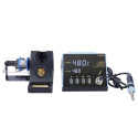 Spájkovačka s LED displejom pre presné spájkovanie, ktorá zobrazuje nastavenú a aktuálnu teplotu. Rýchle zahrievanie do 8 sekúnd a výkon 70 W s rozsahom teploty 160 °C–480 °C. Automatický režim spánku po 10 minútach nečinnosti, ktorý zníži teplotu na 200 °C. Ergonomický dizajn s flexibilným silikónovým káblom a stojanom pre bezpečné odkladanie. Kalibrácia teploty a čistiaca hubka pre jednoduché čistenie. Bezpečnostné funkcie zahŕňajú ochranu pred prehriatím. Napájanie 220–240V, 50Hz, dĺžka napájacieho kábla 1,35m.
