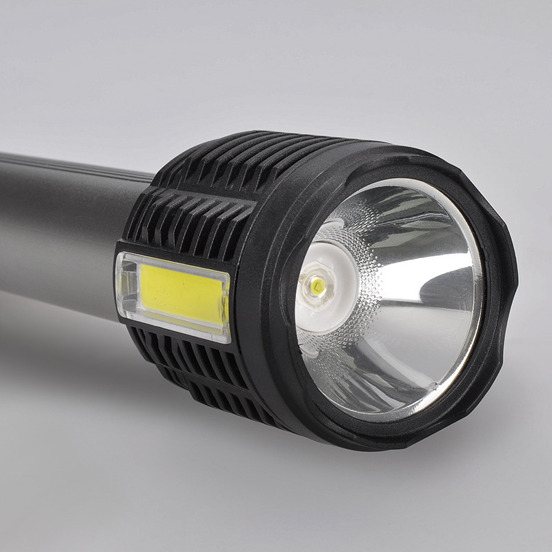 - ručná LED svietidlo s hlavným a bočným zdrojom svetla