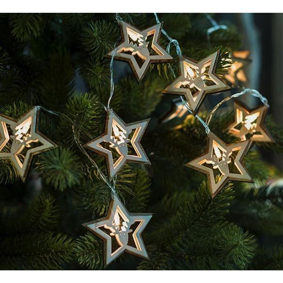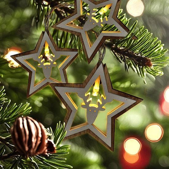 Vianočný dekoratívny reťaz s drevenými hviezdami a LED diódami