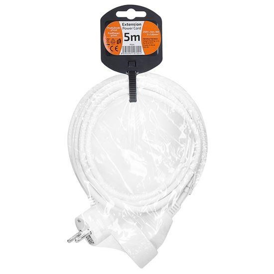 Kompaktný biely predlžovací kábel s dĺžkou 5 metrov a jednou zásuvkou je ideálny na jednoduché predĺženie elektrickej energie v domácnosti, kancelárii alebo dielni. Vhodný na pripojenie samostatného zariadenia mimo dosah pevnej zásuvky.