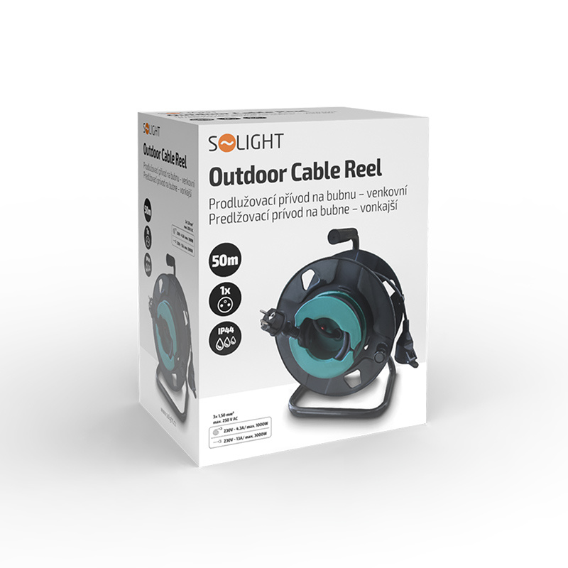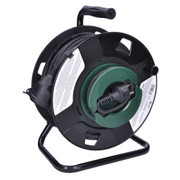 Maximálna záťaž 3000 W (13 A pri 230 V~) umožňuje bezpečný prevádzku väčšiny vonkajších a profesionálnych zariadení. Ergonomická rukoväť uľahčuje prenášanie a rýchle navíjanie kábla. Ideálny pomocník pre profesionálne stavebné práce, údržbu alebo náročné hobby projekty.