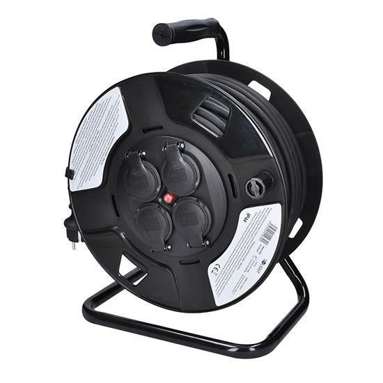 Gumený kábel s vodičmi o priereze 3×1,5 mm2 je vhodný na vonkajšie použitie aj v interiéri. Buben je vybavený zásuvkami s detskou poistkou a tepelnou poistkou, ktorá zabezpečuje bezpečnosť pri preťažení alebo neúplnom odvinutí kábla. Produkt spĺňa stupeň krytia IP44, ktorý zabezpečuje ochranu proti striekajúcej vode.