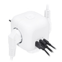 Šikovné rozmiestnenie a moderný dizajn Premyslené rozmiestnenie zásuviek umožňuje ľahké pripojenie rôznych napájacích káblov aj objemných napájacích adaptérov bez vzájomného prekážania. Elegantný dizajn kocky s zaoblenými hranami, bielym telom a šedými zásuvkami sa hodí do každého prostredia – či už ide o kanceláriu, domácnosť alebo pracovnú dielňu.
