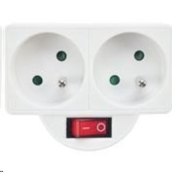 Solight rozbočka, 2x 10A, bílá, vypínač