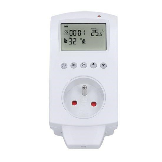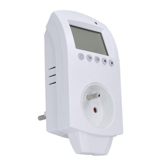 termospínaná programovateľná zásuvka na vnútorné použitie, spína pri dosiahnutí nastavenej teploty možnosť nastavenia rôznych režimov pre vykurovanie alebo chladenie (až 6 režimov na 24h) možnosť nastavenia pre všedný deň a víkend časový spínač, umožňuje zásuvku zapnúť alebo vypnúť automatický režim/režim ručného nastavenia presnosť merania teploty ±1°C rozsah nastavenia teploty 5°C až 35°C vlastná spotreba 0,3W krytí IP20 napájanie: 230V/50Hz, max. záťaž 16A, 3680W