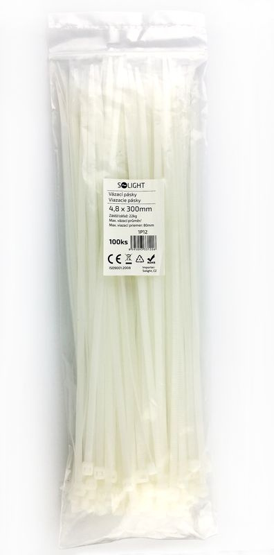 Solight vázací nylonové pásky, 4,8 x 300mm, natural, 100ks