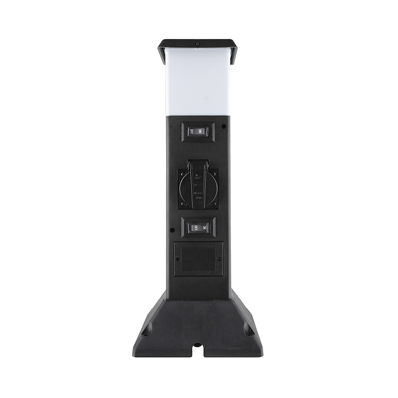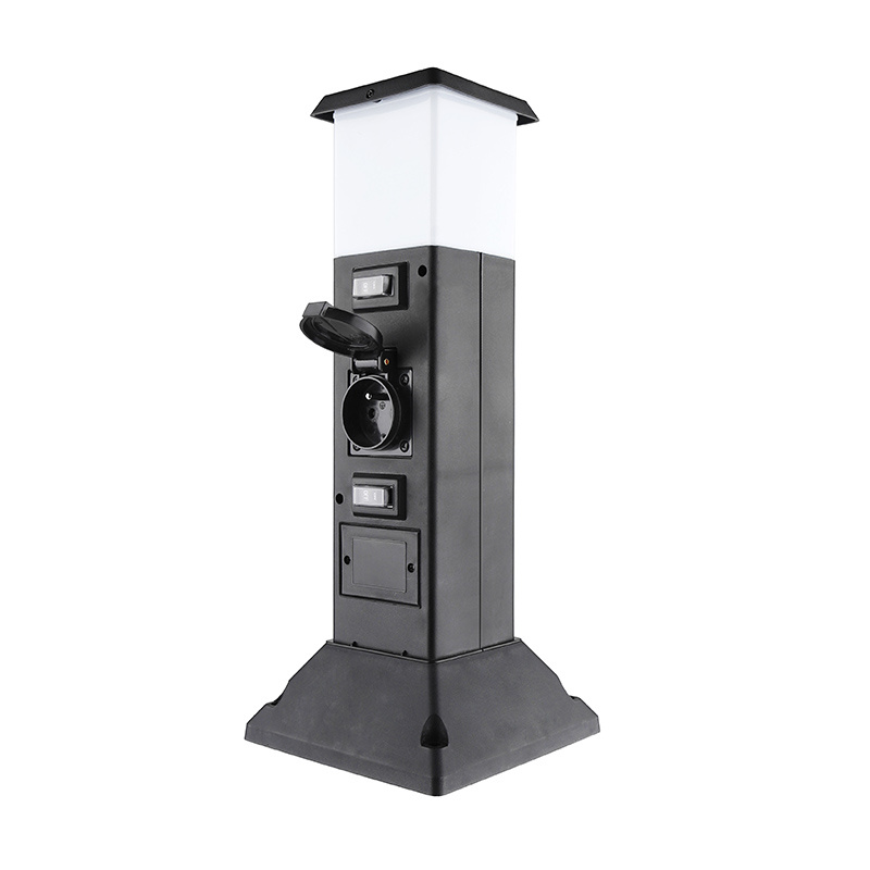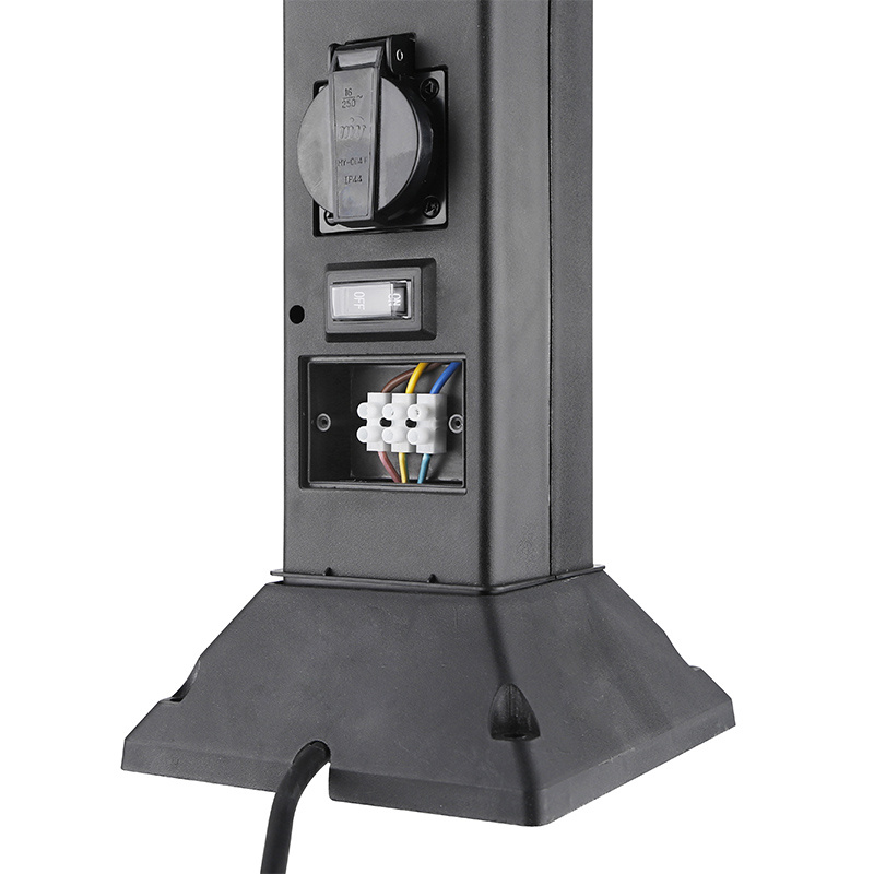 Solight zahradní sloupek IP44 s LED osvětlením, plast, 2 zásuvky, hranol, černý