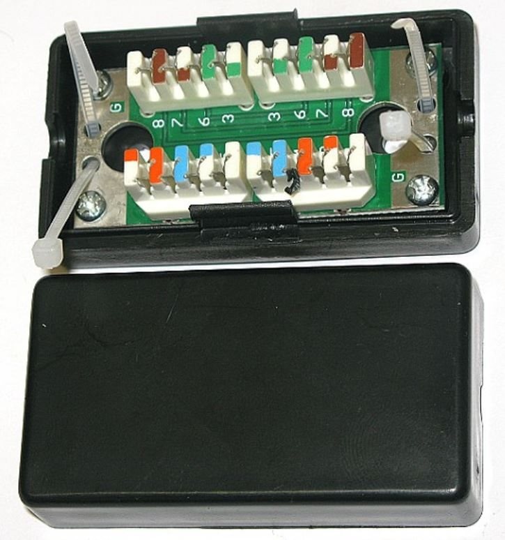 Propojovací box umožní propojit dva kabely UTP Cat5E při zachování parametrů Cat5E