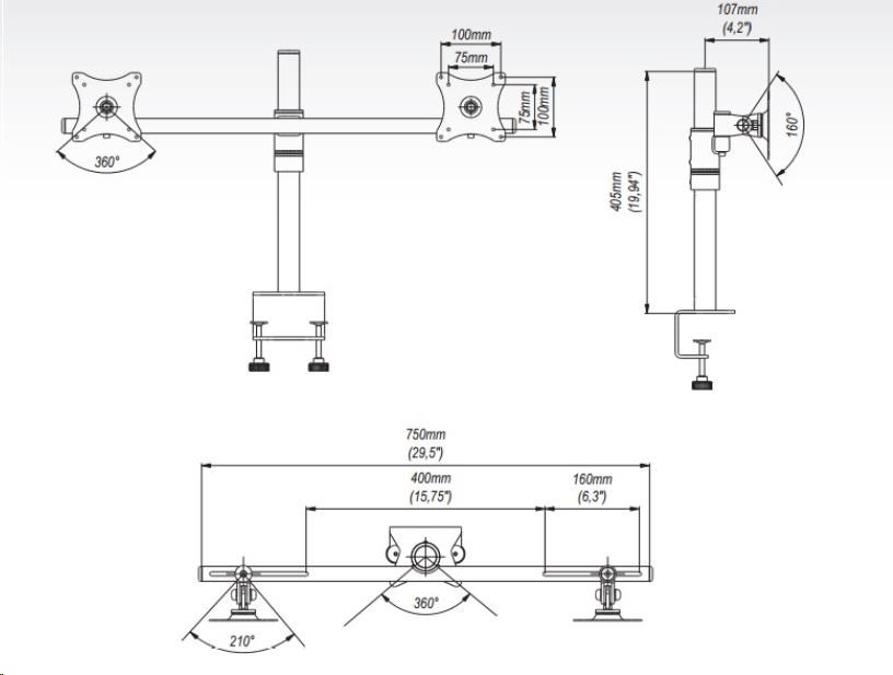 posun obrazovky v osi držiaka - nastavenie vzdialenosti medzi monitormi