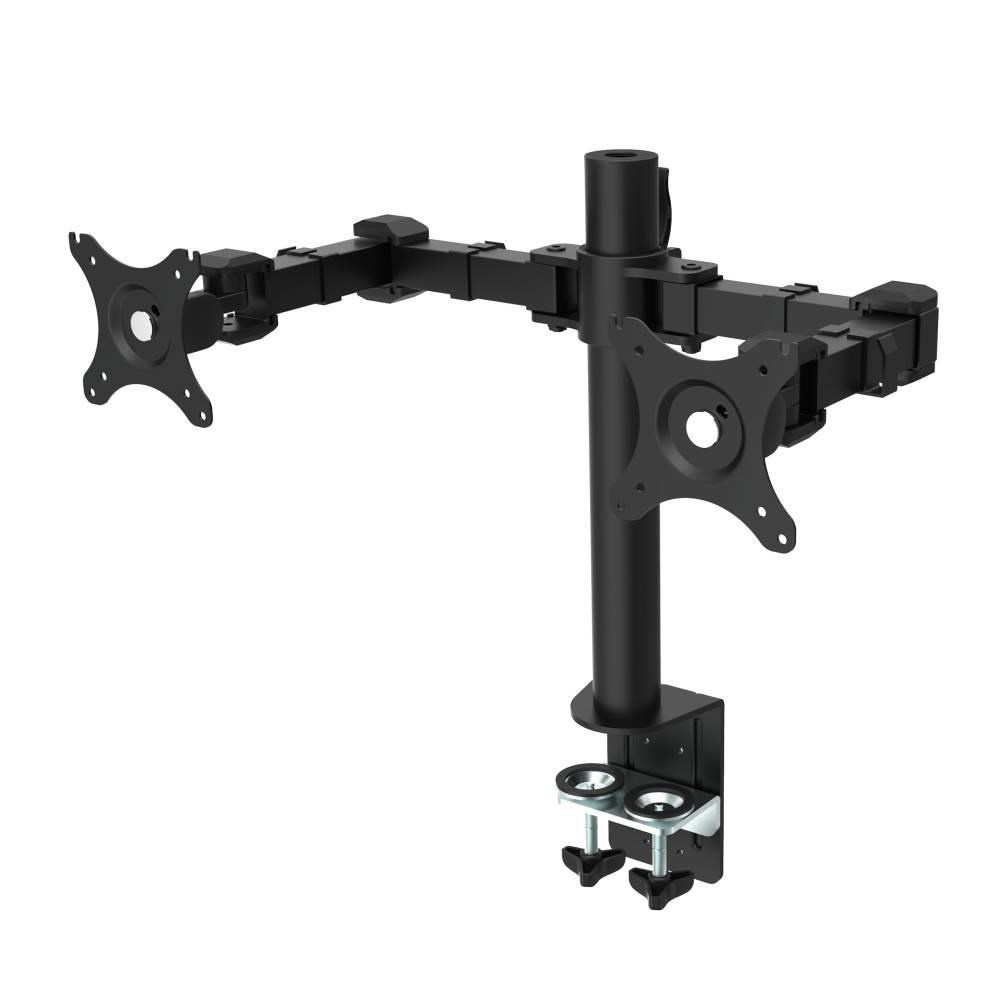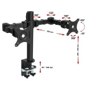 Stolný držiak na 2 monitory Ergosolid NF12 Stolový držiak na 2 monitory 10-30", otáčateľný +/- 180°, sklopný +85°/-15°, pivot, nastavenie výšky 20-34cm, dĺžka ramien 36cm, VESA 75x75 a 100x100, spoľahlivý stolový úchyt 20-100mm, nosnosť 20kg Stolový držiak pre spoľahlivé zavesenie dvoch monitorov a ich nezávislé nastavenie. Držiak vyniká svojou kvalitou, spoľahlivosťou a jednoduchým polohovaním zavesených monitorov. Veľmi jednoducho nastavíte výšku monitorov (bez použitia náradia), náklon, otáčanie do strán, rotáciu obrazoviek (otočenie na šírku alebo na výšku), korekciu roviny obrazovky. Nosník držiaku je prispôsobený na vedenie káblov, vývod je nad stolovou doskou. Upevnenie držiaku je možné na okraje všetkých stolových dosiek o priemere 20mm až 100mm. Držiak je vhodný na zavesenie monitorov s uhlopriečkou 10" až 30" s hmotnosťou až 10kg (celková nosnosť 20kg). Farebné prevedenie čierne. Záruka 3 roky. Stolový držiak na 2 monitory Ergosolid NF12 Technické údaje: celková nosnosť 20kg na monitory s uhlopriečkou 10" až 30" podpora VESA štandardov 75x75 a 100x100 nastaviteľná výška 200-340mm nezávislé nastavenie každého monitoru otočenie do strán +/- 180° sklon +85° až -15° funkcia PIVOT - otočenie monitoru na šírku alebo na výšku nastavenie vzdialenosti monitora od úchytu dĺžka ramien 360mm 3 spoľahlivé kĺby pre nastavenie požadovanej pozície každého ramena materiál oceľ uchytenie na okraj všetkých stolových dosiek o priemere 20mm až 100mm farebné prevedenie čierne balenie obsahuje inštalačný materiál záruka 3 roky Kvalitný stolový držiak na upevnenie a polohovanie 2 monitorov Ergosolid NF12 Držiak podporuje VESA štandardy pre upevnenie monitorov: VESA 75x75 VESA 100x100 Stolový držiak na 2 monitory ERGOsolid NF12 je vhodný na zavesenie všetkých dostupných značiek monitorov. Držiak je vhodný na monitory Acer, AOC, Asus, BenQ, Dell, Eizo, Fujitsu, Hanspree, HP, iiyama, Lenovo, LG, Marshall, MSI, NEC, Neovo, Panasonic, Philips, Samsung, Sharp, ViewSonic, All in One PC a ďalšie. Vďaka vynikajúcej kvalite, odolnosti a spoľahlivosti sa tieto držiaky osvedčili na použitie aj v náročných prevádzkach: školské učebne, knižnice, nemocnice, prevádzky a výrobné haly vo firmách.