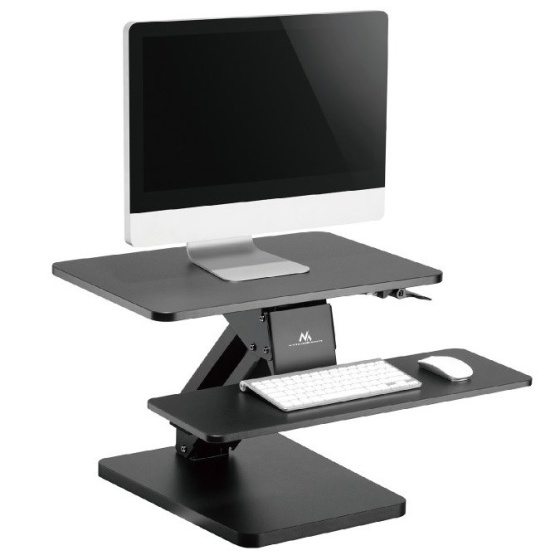 Sit-stand stolový stojan na monitor a klávesnicu Fiber Mounts M8C82 Pracovná stanica pre ľahkú zmenu polohy pre prácu vsedde alebo vestoje, ergonomická, jednoduché nastavenie a polohovanie, stolná, monitory a TV 15-43" Veľmi pevná, odolná a stabilná stolová pracovná stanica na monitor a klávesnicu s myšou. Jednoduchá a rýchla zmena výšky pre prácu vsedde alebo vestoje. Ideálna do kancelárií a podnikov, ale aj domácností. Stolová pracovná stanica do kancelárie alebo domácnosti, na monitor, notebook alebo laptop a klávesnicu, sit-stand - zmena pozície pre prácu vsedde alebo vestoje - Fiber Mounts M8C82 Technické údaje: nosnosť hornej police (na monitor alebo notebook): 13kg nosnosť spodnej police (na klávesnicu s myšou): 2kg na monitory a TV 15-43" rozmer hornej police: 600 x 400 x 16 mm rozmer spodnej police: 660 x 215 x 12 mm výškové polohovanie (od hornej police po stolovú dosku): 160 až 445 mm manuálne výškové polohovanie veľmi jednoduché a rýchle nastavenie výšky vďaka plynovému pístu ideálne pre prácu ako vsedde, tak i vestoje vynikajúca stabilita pevná konštrukcia farebné prevedenie čierne záruka 3 roky Stolový stojan na monitor, notebook alebo laptop a klávesnicu / pracovná stanica do kancelárie so zmenou výšky pre prácu vsedde alebo vestoje - Fiber Mounts M8C82 Stolové stojany na monitory alebo notebooky a klávesnice / pracovné stanice s výškovým polohovaním pre jednoduchú a rýchlu zmenu pracovnej výšky sa stali veľmi žiadaným sortimentom v ergonomických kanceláriách, kde sa výrazne viac dbá na pracovné pohodlie a zdravší životný štýl. Pracovná stanica Fiber Mounts M8C82 patrí medzi tie lacnejšie, avšak kvalitou a spracovaním sa vyrovná aj výrazne drahším pracovným staniciam.
