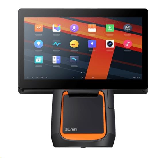 POS systém, maloobchod, Dotyková obrazovka, kapacitná, 39,6 cm (15,6''), rozlíšenie: 1920x1080 pixelov, Qualcomm Octa Core, 2,2GHz, RAM: 4 GB, Flash: 64 GB, USB (5x), RS232, Bluetooth, Ethernet, Wi-Fi (802.11ac), zásuvka na výdaj bankoviek, zvuk, Micro SD-Slot, integrovaná tlačiareň dokladov (80mm), Android (9.0), vrátane: napájacieho zdroja, napájacieho kábla (EÚ), farba: čierna, oranžová