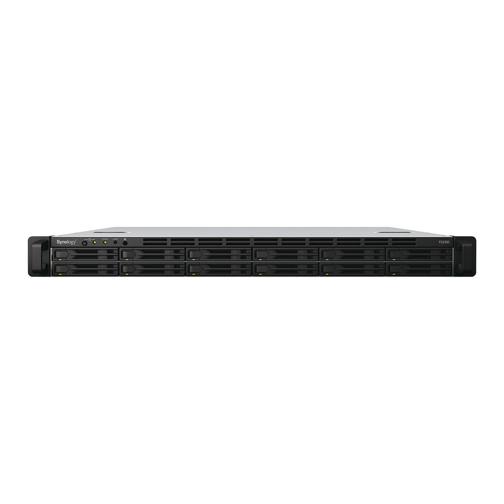 Vďaka svojej kompaktnosti 1U predstavuje 12-šachtové zariadenie Synology FlashStation FS2500 ideálne riešenie úložiska pre malé a stredné podniky, ktoré chcú zvýšiť rýchlosť odozvy aplikácií náročných na vstupy a výstupy, ako sú napríklad virtuálne počítače (VM), ľahké databázy alebo emailové servery.
