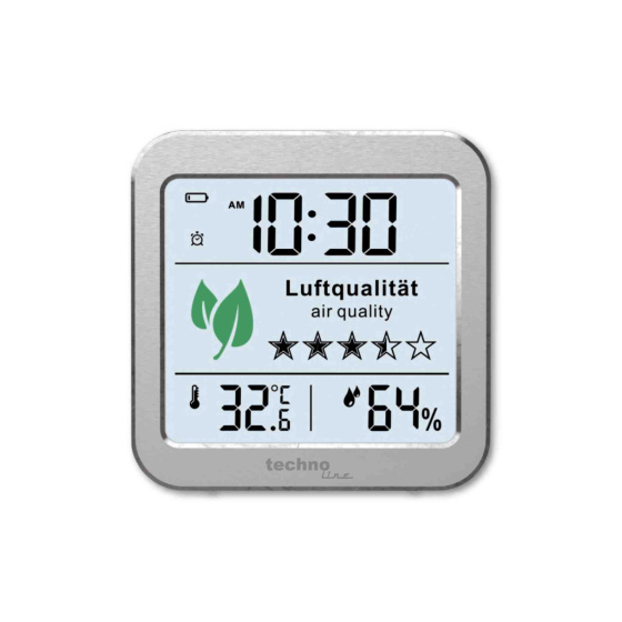 Merač kvality vzduchu Vám pomôže pri analýze a vyhodnotení kvality vzduchu v miestnosti. Integrovaný snímač kvality vzduchu nepretržite monitoruje klímu v miestnosti, analyzuje koncentráciu znečisťujúcich látok a na základe zistených hodnôt poskytne odporúčania na vyvetranie miestnosti. Meranie prebieha pomocou výkonného senzora súhrnu toxických organických látok (TVOC) a CO2. Koncentrácia CO2 je dobrým indikátorom vydýchaného vzduchu. V dychanej vzduchu vo vnútornom prostredí je koncentrácia CO2 zhruba 50 x vyššia než je vo vdychovanom vzduchu. Pre odporúčanie vetrania sa využíva fakt, že ak stúpa koncentrácia CO2, stúpa aj koncentrácia toxických organických látok (VOC). Keď sa začne vetrať na základe zvýšenej koncentrácie CO2, klesne koncentrácia ako CO2, tak aj koncentrácia VOC a cítime sa lepšie. Senzor CO2 merača kvality vzduchu WL 1020 nedetekuje obsah CO2 priamo v prostredí, ale približnou hodnotou odvodenou od iných príslušných parametrov senzora. Vo vnútorných podmienkach sa vzduch v miestnosti skladá z približne 78 % dusíka, približne 21 % kyslíka, približne 1 % ušľachtilých plynov a približne 0,03 % oxidu uhličitého. Koncentrácie vzácnych plynov a oxidu uhličitého sú rozhodujúce pre hodnotenie kvality vnútorného ovzdušia a jeho vplyv na našu pohodu a zdravie. Kvalita vzduchu je označená 5 hviezdičkami na 11 úrovniach. Čím viac symbolov hviezd je zobrazených, tým lepšia je nameranú kvalita vzduchu. Pri napájaní USB adaptérom (adaptér nie je súčasťou balenia) je senzor kvality vzduchu stále zapnutý, prebieha meranie a odporúčania vetrania sú indikované žltým osvetlením a dôrazné odporúčanie vetrania podsvietením červeným osvetlením displeja. Biele osvetlenie indikuje dobrú kvalitu vzduchu. Pri napájaní len pomocou batérií je osvetlenie displeja vypnuté, je zobrazený čas, teplota, relatívna vlhkosť a posledné meranie kvality vzduchu. Na obnovenie merania kvality vzduchu je potrebné manuálne aktivovať senzor kvality vzduchu, zobrazí sa hodnotenie pomocou hviezdičiek a z dôvodu úspory batérií sa po 5 minútach merania vypne a na displeji zostane výsledok posledného merania. ? LCD displej o rozmeroch 58 x 65 mm ? veľkosť číslic na displeji – čas 14 mm, teplota a relatívna vlhkosť 10 mm ? zobrazenie kvality vzduchu pomocou 5 hviezdičiek na 11 úrovniach a farbou osvetlenia displeja (biela, žltá, červená - pri napájaní USB adaptérom) ? možnosť obnovenia továrenskej kalibrácie ? meranie teploty a relatívnej vlhkosti ? zobrazenie teploty vo C alebo F ? pamäť na maximálne a minimálne namerané hodnoty teploty a rel. vlhkosti ? čas vo formáte 12 alebo 24 hodín ? budík s funkciou opakovaného budenia po 5 minútach (Snooze) ? budíkový signál - 4 pípnutia za sekundu ? 3 stupne jasu osvetlenia alebo vypnutie osvetlenia displeja (pri napájaní USB adaptérom) ? ikona slabých batérií ? farba biela so strieborným rámikom ? napájanie pomocou batérií (2 ks typ AAA-mikrotužkové), alebo USB adaptérom (nie je súčasťou balenia) ? možnosť postavenia, pri napájaní len batériami aj zavešenia Obsah balenia ? meradlo kvality ovzdušia ? USB kábel ? český, nemecký, anglický TECHNICKÉ PARAMETRE Detekcia CO2 áno, od 400 do 9999 ppm Metóda merania CO2 nedetekuje CO2 priamo v prostredí, ale príslušnú hodnotu odvodenú od iných parametrov Detekcia TVOC áno, od 0 do 9,999 mg/m3 Indikácia kvality vzduchu 5 hviezdičkami na 11 úrovniach, farbou osvetlenia displeja (biela, žltá, červená - pri napájaní USB adaptér) Rozsah merania vnútorných teplôt / tolerance -9,9°C do +50°C ±1°C Rozlíšenie vnútorných teplôt 0,1°C Rozsah merania vnútorné rel. vlhkosti / tolerance 10 % až 95 % ±5 % Rozlíšenie vnútorné rel. vlhkosti 1 % Pamäť na max a min namerané hodnoty áno, teploty a rel. vlhkosti Čas áno, manuálne nastavený Formát času 12 / 24 hodín Budík áno Opakované budenie (Snooze) áno, po 5 minútach Rozmery displeja hlavnej jednotky 64 x 58 mm Veľkosť číslic – hlavná jednotka čas 19 mm, teplota, rel. vlhkosť 10 mm Osvetlenie displeja hlavnej jednotky áno, pri napájaní USB adaptérmi 3 stupne jasu a možnosť vypnutia osvetlenia, indikácia kvality vzduchu zmenou farby osvetlenia displeja - biela, žltá, červená. Pri napájaní batériami je osvetlenie vypnuté. Napájanie USB adaptér 5,0 V, 1 A (nie je súčasťou balenia) 2 ks batérií 1,5 V typ AAA (mikrotužkové, nie sú súčasťou balenia) Celkové rozmery 81 x 81 x 25 mm Hmotnosť 98 g (bez batérií) Farba biela so strieborným rámikom Možnosť postavenia / zavešenia áno / áno, pri napájaní len batériami LOGISTICKÉ ÚDAJE Hmotnosť celkom (kg) 0.176 Hmotnosť výrobku (kg) 0.098 Hmotnosť obalu (kg) 0.024 Rozmery obalu (cm) 95 x 94 x 55 Hmotnosť kartónu (kg) 8.800